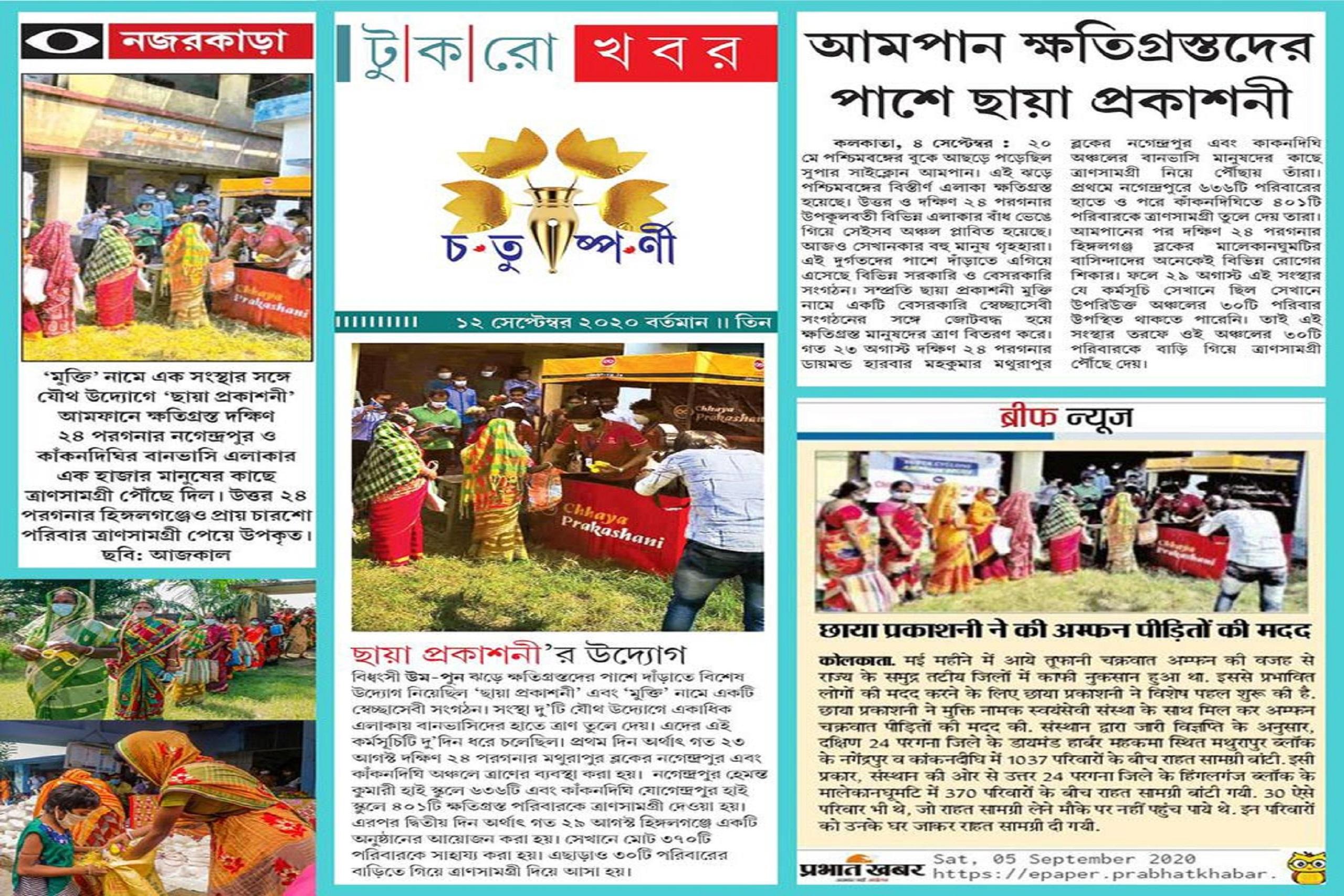Cyclone Amphan Relief news published in different newspaper